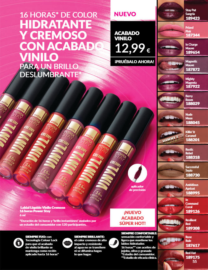 Labial Líquido Mate Mark Maquillaje Avon - Su cepillo innovador en forma de diamante define perfectamente tus labios en una sola pasada, con pigmentos y de forma precisa. Define tus labios perfectamente y prepáralos con la hidratación de un color duradero y con una cobertura completa en solo una pasada. Contiene SPF 15. No se difumina ni se retira, proporciona un acabado mate perfecto durante horas. 7 ml.
