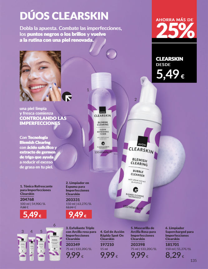 Belleza Avon Clearskin Limpiador, Exfoliante y Mascarilla 3 en 1 - Con cada pasada ayuda a mejorar el aspecto de las imperfecciones de forma rápida. Minimiza los poros. 125 ml.