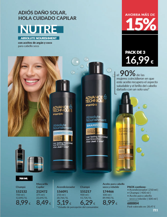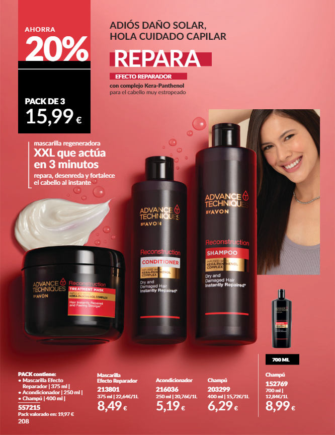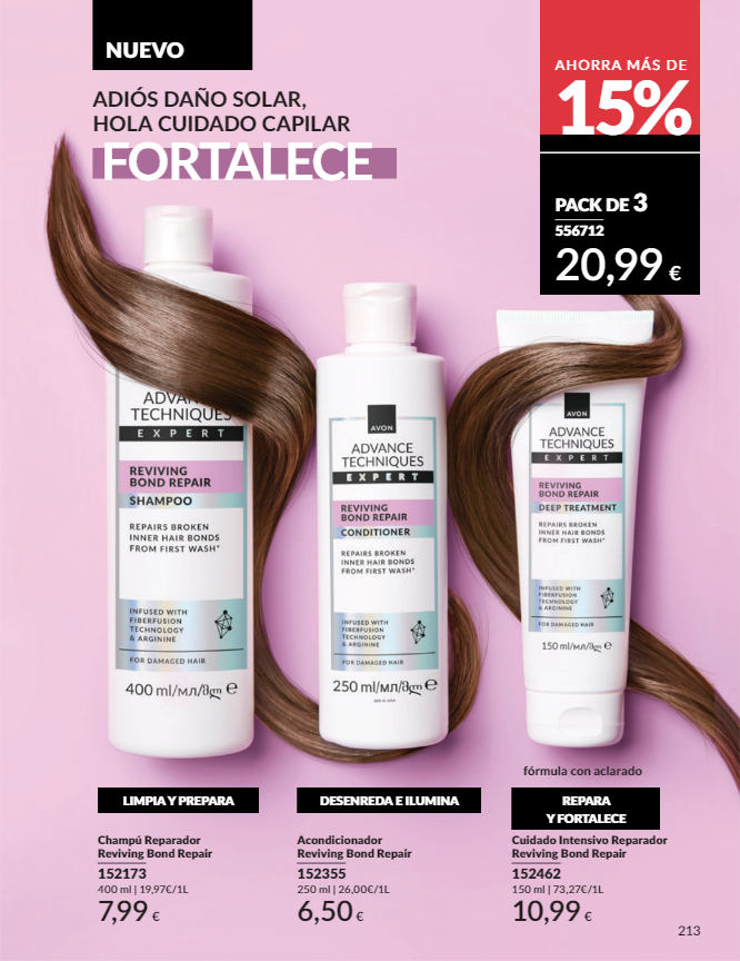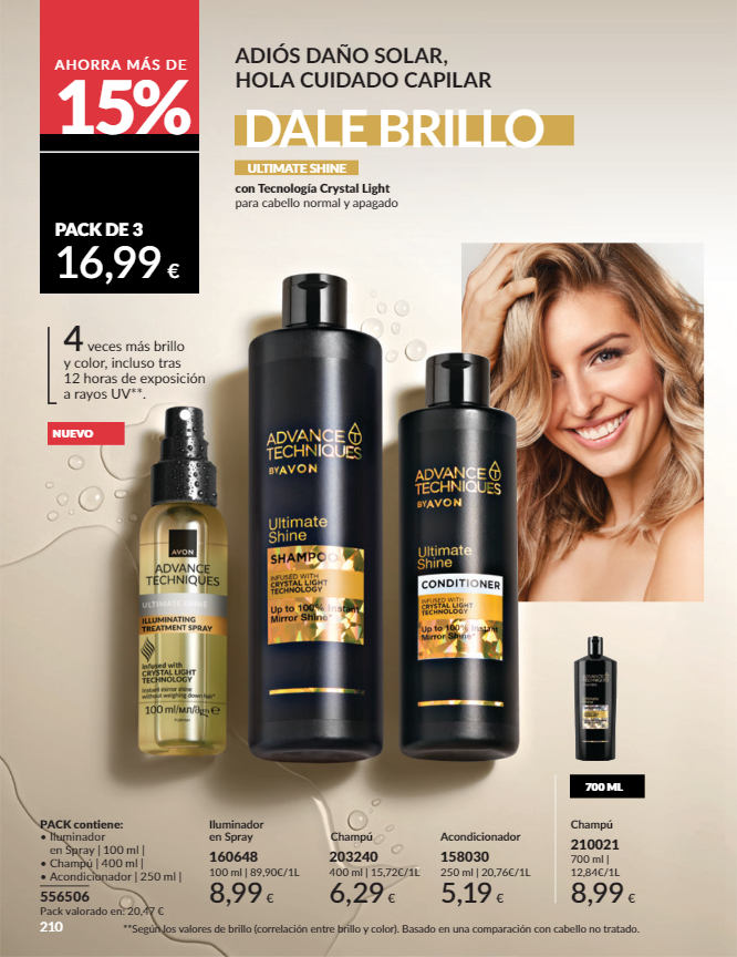 Belleza Avon Advance Techniques Daily Shine - Con Tecnología Multishine, que ayuda a hidratar, suavizar y resaltar el brillo del cabello. instantáneamente hasta 93%, dejándolo saludable, luminoso y acondicionado. Problema: Cabello que luce sin brillo y sin vida.